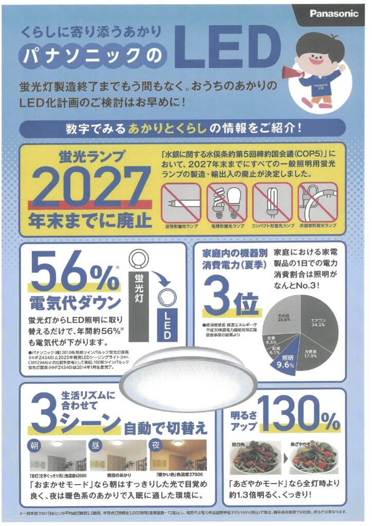 パナソニック蛍光ランプが2027年製造終了となります。